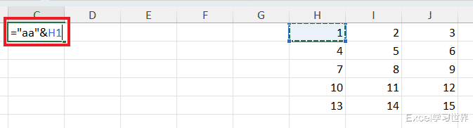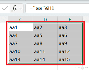 6. 在 C1 单元格中输入公式 ="aa"&H1--> 向右向下拖动单元格