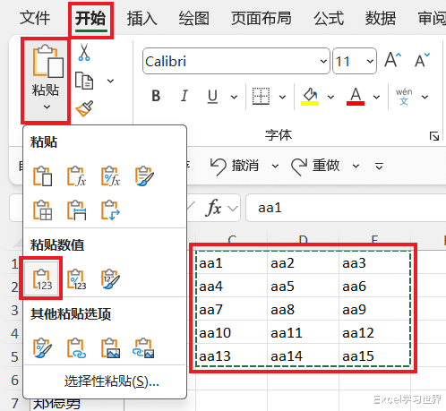 7. 复制 C1:C5 区域 --> 在原地粘贴为值
